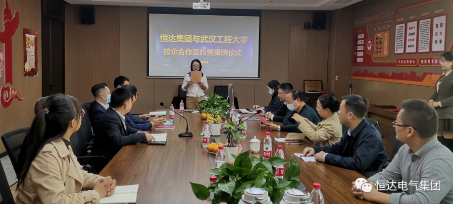 恒达集团公司总经理罗小勇首先对武汉工程大学谢春晖一行表示热烈欢迎。他指出,恒达集团与武汉工程大学共建研发中心是把科技创新作为公司未来发展的重要战略支撑,是推动企业产品优化升级,落实恒达集团科技兴企的一项重要举措,也是校企双方在高素质职业技能人才培养方面的一次大胆探索和尝试,对助力企业高质量发展具有十分重要的意义。恒达集团将以此为契机,推动企业加快转型升级,同时也将为武汉工程大学的产学研成果转换、学生劳动和学习实践提供企业平台和实践环境,本次校企合作对促进企业发展和学校人才培养将发挥重要作用,是互利互惠、合作双赢的,希望校企双方的合作能够持续长久,结出硕果。