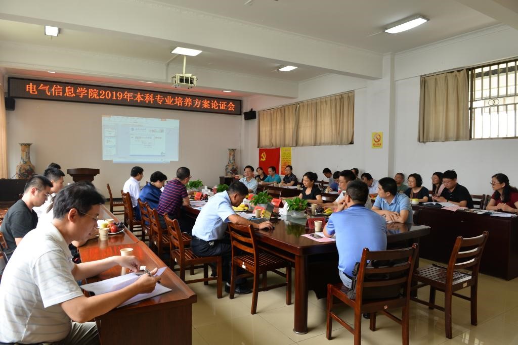 洪汉玉院长首先对五位校外专家莅临我校指导表示感谢,并介绍学院概况及电气学院现有专业发展简况。教务处处长王海晖,从培养方案适应学生发展需求,经济社会发展对人才需求的多元化、高端化,“全面成才、追求卓越”的人才培养理念和“两型两化”人才培养总目标等方面,对2019年培养方案的修订原则意见和指导思想做了介绍。