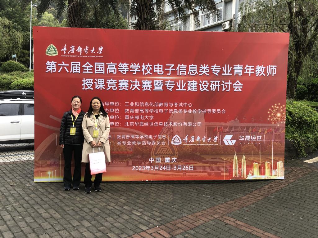 本网讯(通讯员 曹新莉)2023年3月24日至26日,第六届全国高等学校电子信息类专业青年教师授课竞赛决赛暨专业建设研讨会在重庆邮电大学举办,来自教育部高等学校电子信息类专业教学指导委员会、清华大学、国防科技大学、电子科技大学等单位和多所高校的专家、教师参会。我校best365网页版登录教师邹连英、曹新莉参加了本次研讨会。