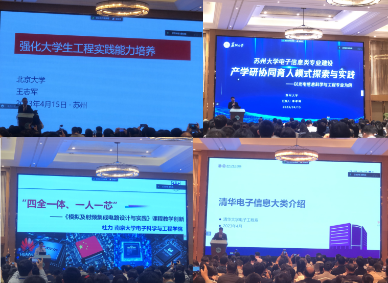 本网讯(通讯员 曹新莉)2023年4月14日至16日,第六届全国高校电子信息类专业教学论坛在苏州大学召开。电子信息教指委副主任王志军、秘书长邓成、委员周建江及光电教指分委委员张亚萍莅会,来自全国300余所高校的600余位电子信息相关专业院校领导、专业负责人及骨干教师参加论坛。我校best365网页版登录教师邹连英、陈柳、戴璐平、曹新莉参加了本次研讨会。