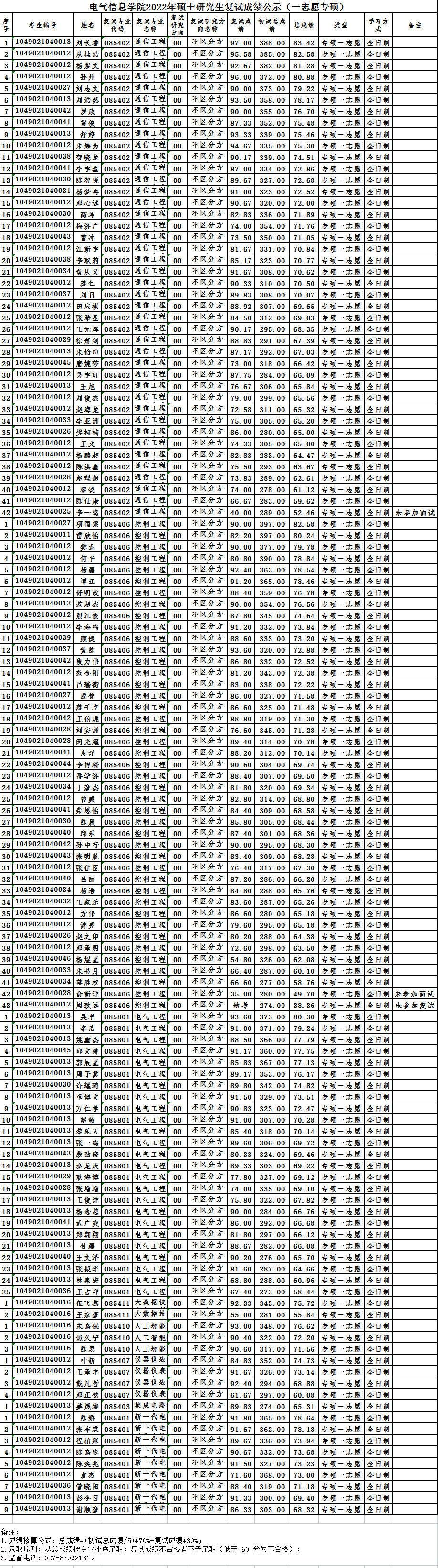 best365网页版登录2022年硕士研究生复试成绩公示(一志愿专硕)