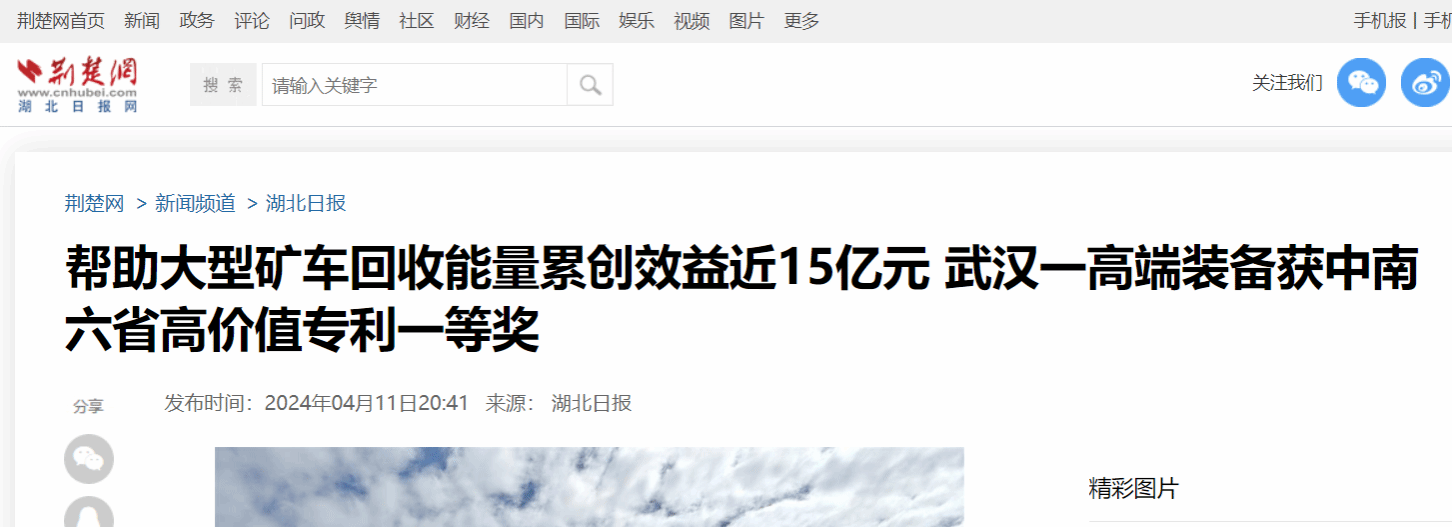 3年,专利运用累计创造经济效益近15亿元,同时每年还减少二氧化碳排放7500吨。2018年、2023年,由院士专家牵头的评价组进行了多次成果评价,评价组认为:“专利技术达到国际领先水平”,该专利成果还荣获2023年湖北省科技进步二等奖。
