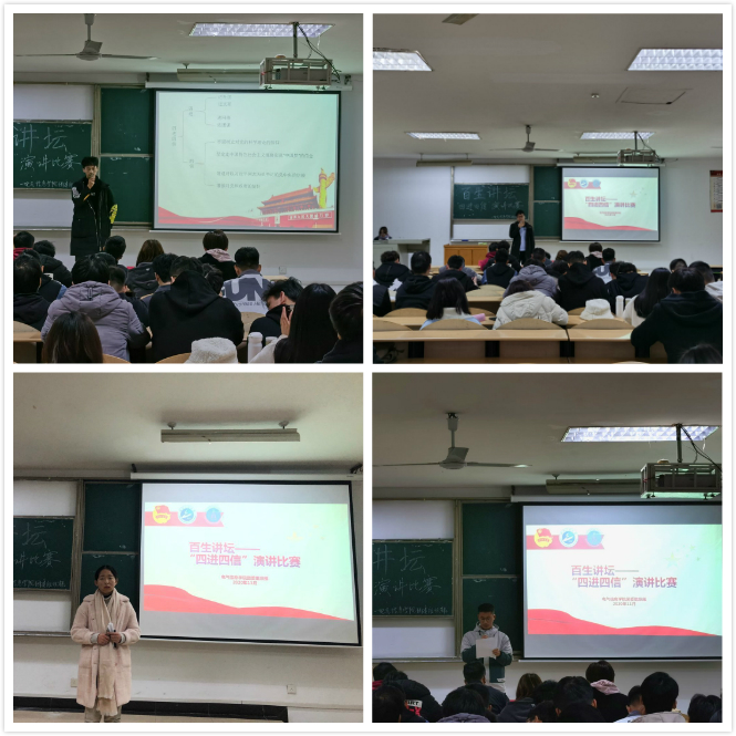 此次演讲比赛旨在用习近平新时代中国特色社会主义思想武装青年学生头脑,以“四进”为手段,以“四信”为目标,增强学生们“四个意识”,展现自身才华与魅力,将“四进四信”精神在学生群体中广为传播。