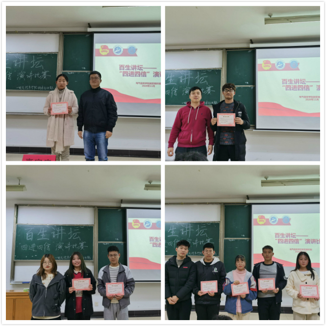 本次演讲比赛参赛选手均来自2020级,电子信息类五班王亚丹获得一等奖,测控技术与仪器一班许光浩获二等奖,电子信息类四班丁世维、电子信息类二班林孟豪获三等奖,自动化类一班李成功、电子信息类三班张蕾、自动化类四班程佳文、电气工程及其自动化四班张亚辉获优秀奖。