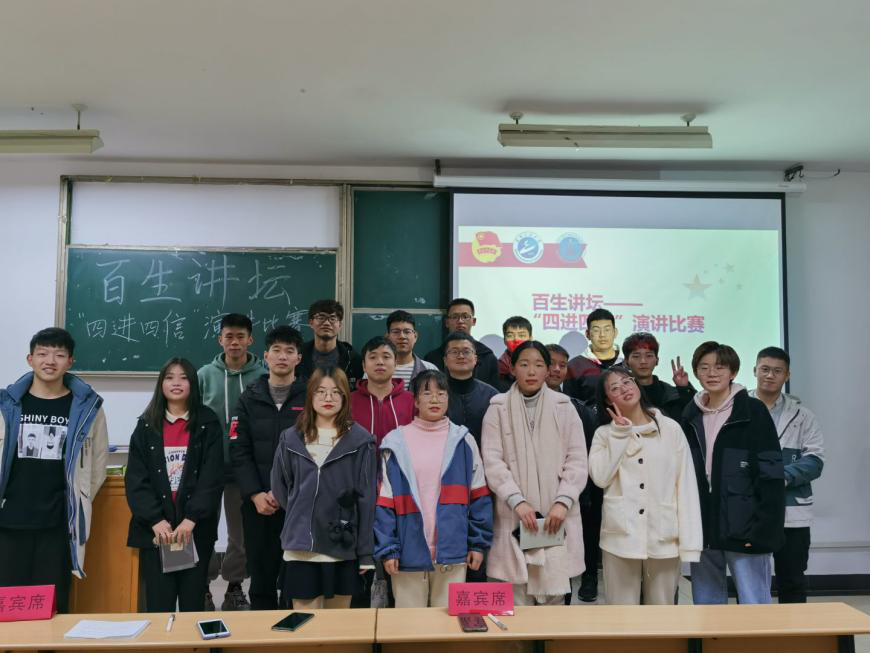 本网讯(通讯员 肖楚阳)为深入学习宣传贯彻习近平新时代中国特色社会主义思想和党的十九届五中全会精神,使广大团员青年树立对共产主义远大理想和中国特色社会主义共同理想的信仰。2020年11月29日下午,best365网页版登录在一教203教室举办了“百生讲坛”-“四进四信”演讲比赛。院团委指导老师任伟、20级辅导员肖楚阳、院团委副书记李欣茹、学生会主席团成员白如雨、王必有以及2020级部分新生参加了此次活动。