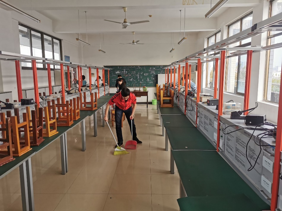 打扫过程中,同学们都非常的认真负责,实验室桌上的小污迹,宣传板玻璃上的扬尘,楼道扶手上的积灰,大家都丝毫没有放过。他们不辞辛苦,经过两个多小时的清扫,学院实验室及各楼层楼道,宣传板都焕然一新。