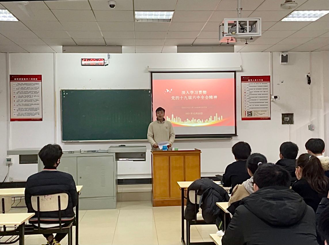 本网讯(通讯员 肖楚阳 杨涛)为深入学习贯彻习近平总书记系列重要讲话精神,引导我广大青年团员深入学习并领会党的十九届六中全会精神,切实把思想和行动统一起来,在新的征程中勇于担当,为中华民族伟大复兴贡献青春力量,1221日下午,学院在L3205开展“学习贯彻党的十九届中全会精神”主题团日活动。马克思主义学院蔡梦雪老师“青马工程”培训班学员及团委、学生会成员参加了本次主题团日活动,本次活动团委指导老师肖楚阳主持