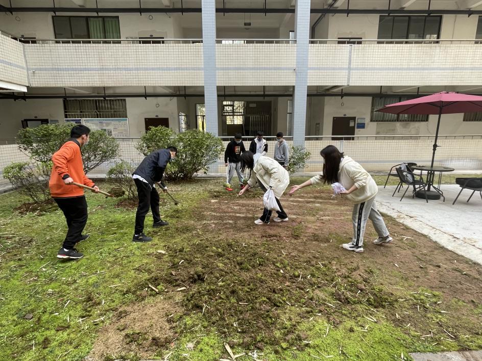 在学院老师的带领下,同学们落实“口罩必戴”的防疫要求,分区域检查、清理责任区内的各处“死角”,针对环境卫生、设施安全、路面破损等方面进行了全面清理。