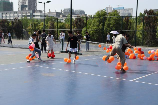 在西北区体育场,主持人带领同学们齐唱团歌,让大家尽快融入到团会的氛围中来。各部门负责人组织参赛同学进入游戏区,开展“心心相印”“爆破气球”“翻滚吧球球”“夹弹飞奔”“摸石头过河”等多项游戏,同学们积极参与,现场气氛十分活跃。