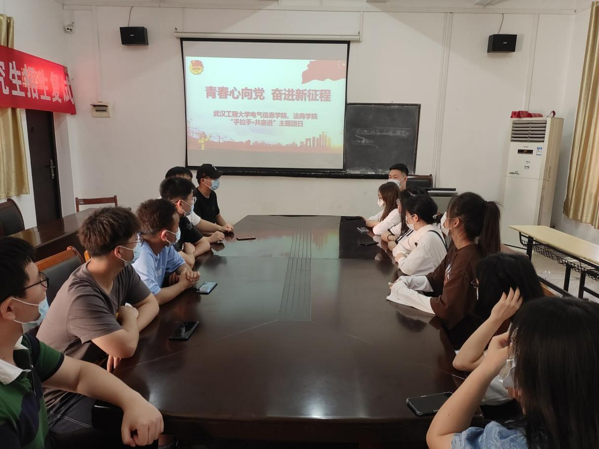 本网讯(通讯员 肖楚阳 章文杰)2022年是中国共产党第二十次全国代表大会召开之年,也是共青团成立100周年。为引导团员青年坚定跟党走,奋进新征程,4月24日下午,best365网页版登录与法商学院在西北区2号楼103会议室联合开展“手拉手·共奋进”主题团日活动,best365网页版登录团委指导老师肖楚阳、法商学院团委指导老师章文杰以及两院学生会部门负责人参加活动。