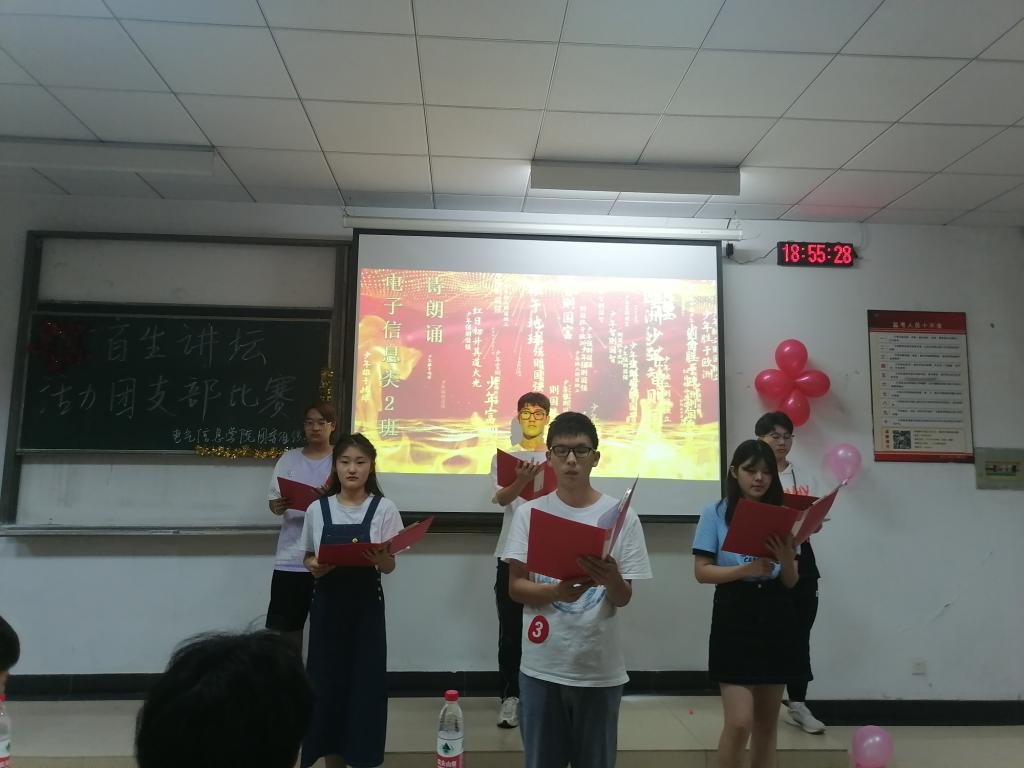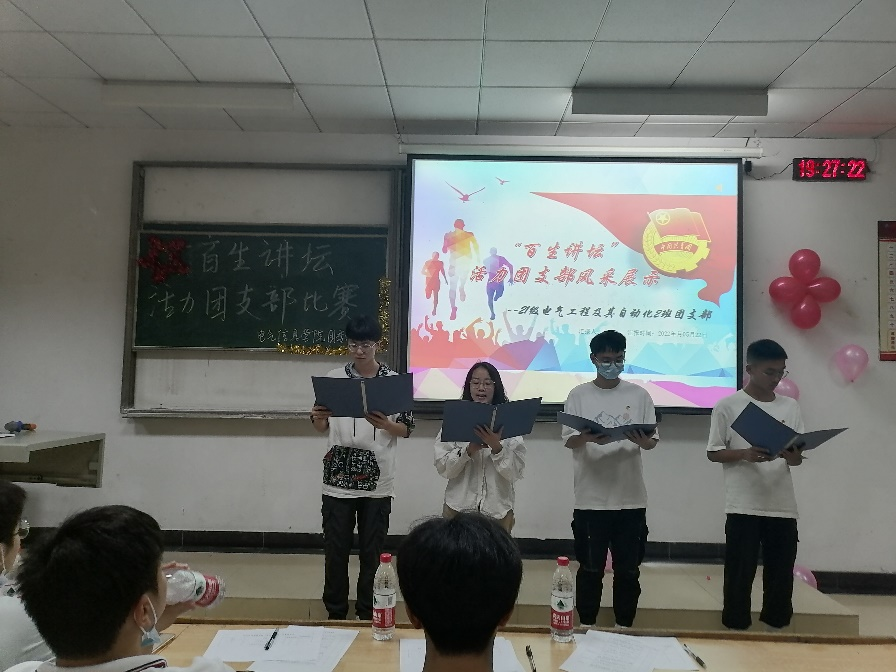 经支部自主申报,学院评议,考核集体基础团务、活动组织能力,本次共有7个团支部进入决赛,决赛由支部成员汇报和风采展示两个环节组成。汇报环节中,各团支部主要围绕支部简介、组织建设、活动开展、特色工作、支部荣誉等方面,展示了本支部的生机与活力。在风采展示环节,各团支部通过大合唱、朗诵、活动集锦等形式充分展现了各个团支部团结、积极、向上的风采。