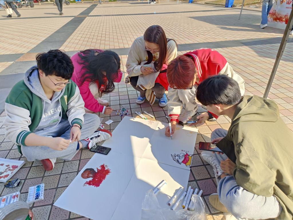 活动现场人气十足,同学们积极加入其中。不少同学踊跃上前展示自己的绘画才能,在画纸上或用颜料或用马克笔留下了自己精彩的画作,他们积极用画笔留下了自己对新学期的美好祝福。同学们用自己饱满的热情,横溢的艺术才华,展现出了他们丰富的内心世界,学院还为参加的同学提供了丰富的抽奖活动。