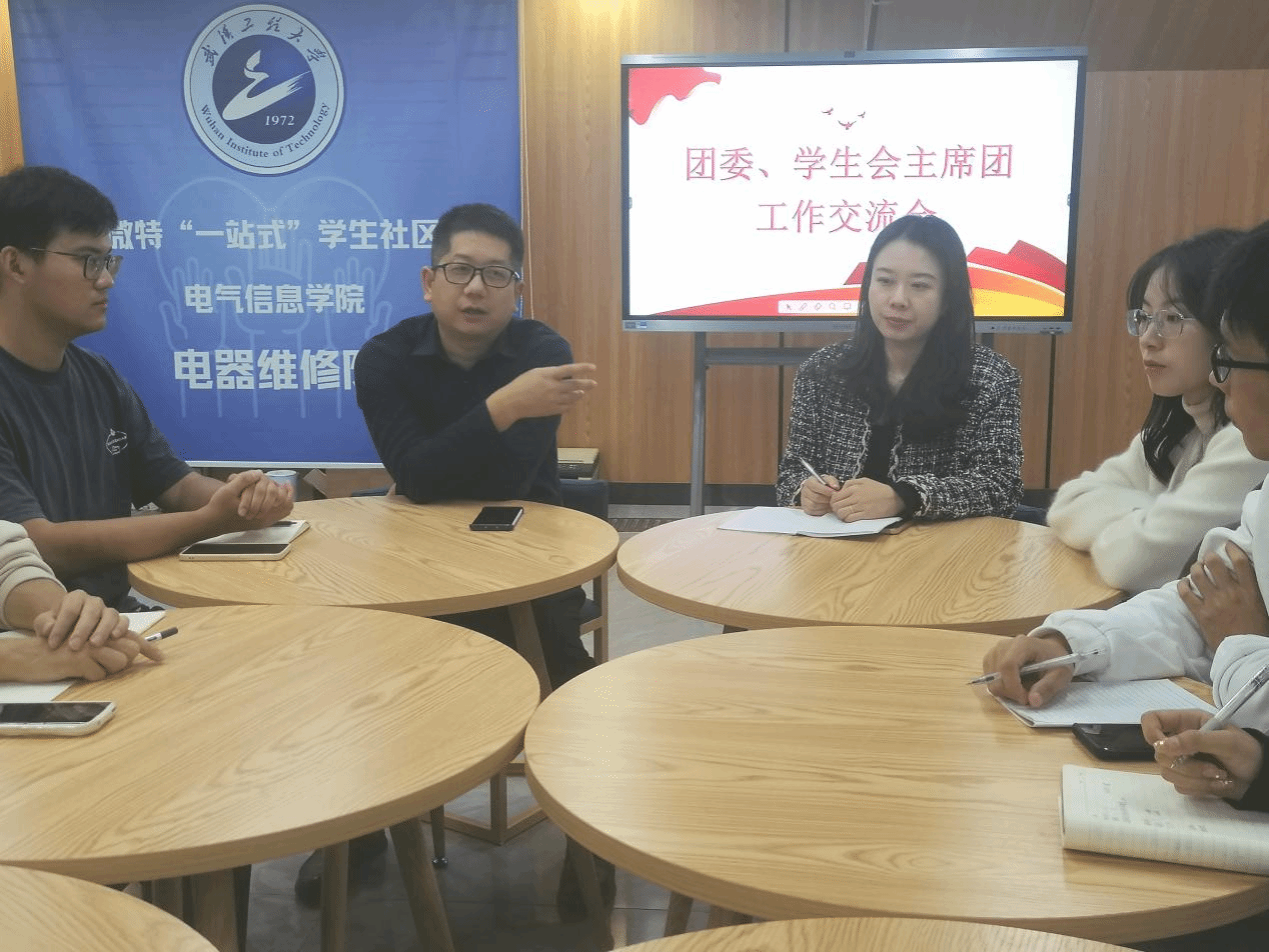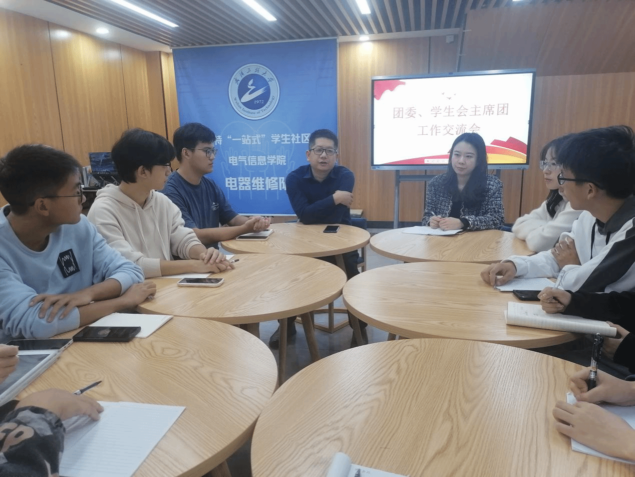 本网讯(通讯员 郭梦樵)为进一步加强团委、学生会的组织管理,促进团学干部共同进步。10月25日下午14:30,学院在微特“一站式”学生社区开展团委、学生会工作交流会。参加此次交流会的有学院党委副书记李国保,团委指导老师郭梦樵,2023级辅导员邬桢洁以及10名分管各部门的主席团成员。本次交流会由郭梦樵老师主持。