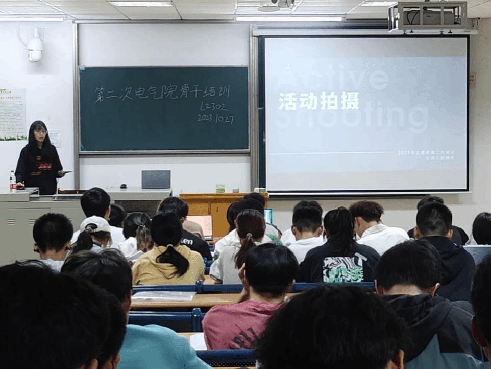 宣传部彭铖昊为志愿者传授活动拍摄的相关知识,教授了拍摄的通用技巧,并列举在拍摄上可能遇到的各类问题和解决方案,详细说明了在教室、室外、运动三种场景拍摄的方式方法,强调11月运动会志愿者对接运动员拍照的注意事项,力求做到拍摄的精确、美观生动形象、主题鲜明,更好的展现同学们的学习和运动风采。