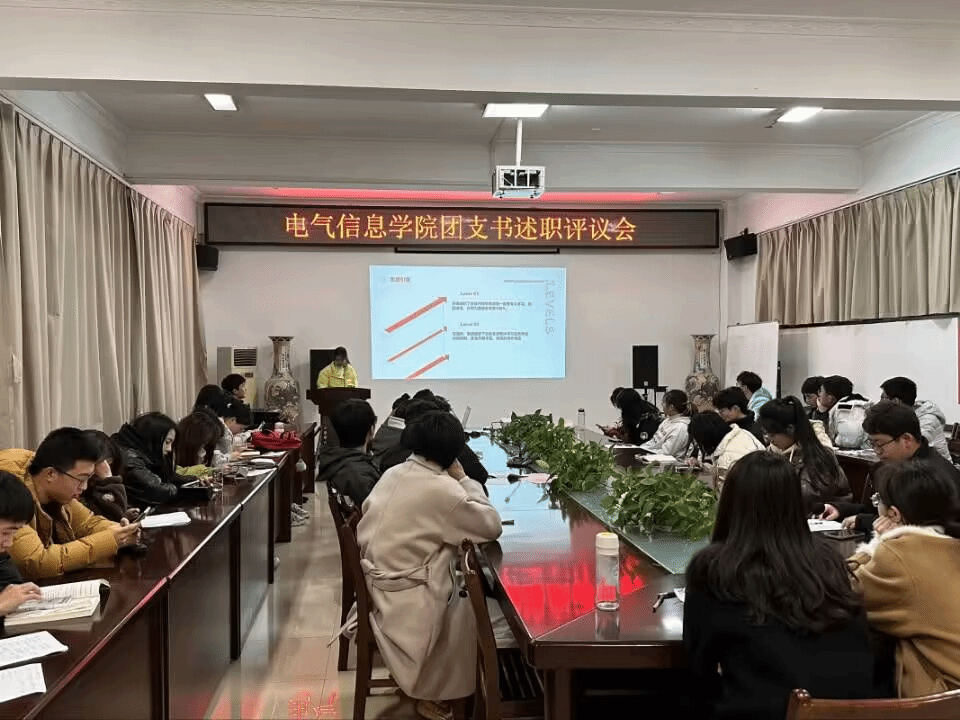 本网讯(通讯员 郭梦樵 王哲)为全面贯彻党的二十大精神,贯彻落实习近平总书记关于青年工作的重要思想和教育的重要论述,进一步激发基层团组织活力,压实基层团建工作任务和基层团组织书记责任。电气信息学院2023年度团支书述职评议大会于1月5日在4B319会议室召开,学院团委指导老师郭梦樵、2023级辅导员邬桢洁、学院团委兼职团干张志锋、刘佳贝及各班团支书等40余人参加了此次会议。