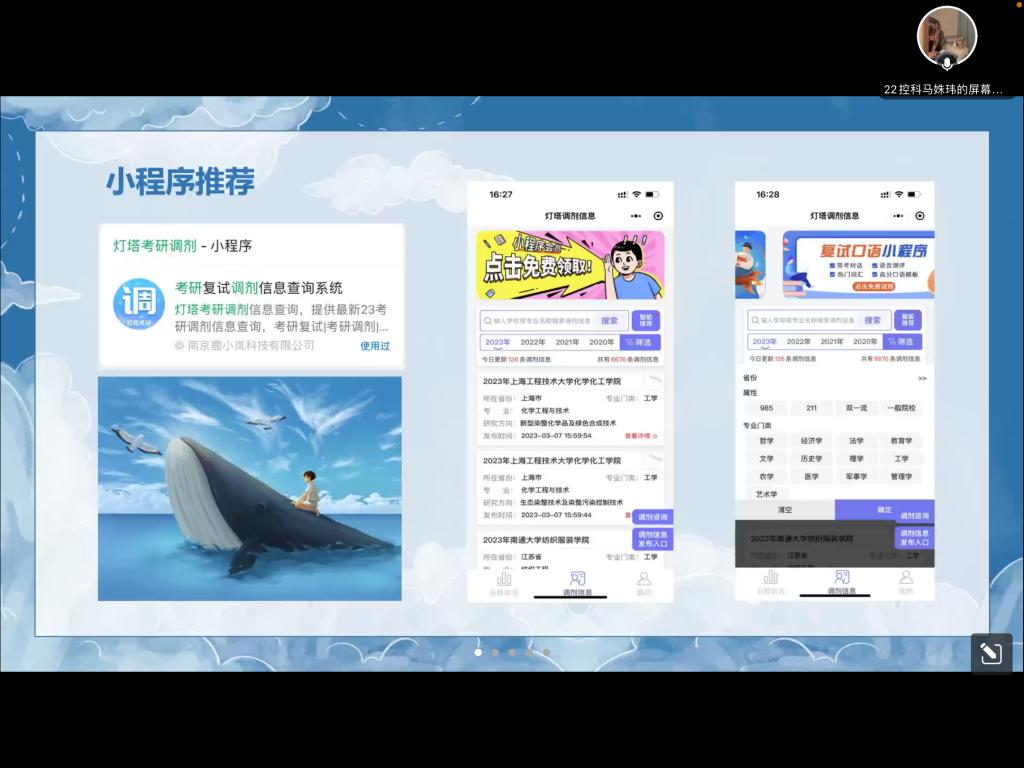 考研成绩出炉后,学院第一时间摸排毕业生考研成绩,各教研室老师结合学生考研初试成绩给予复试及调剂方面的经验指导。3月10日国家线出来后,学院组织开展了两场考研复试及调剂经验分享会。针对报考本校的同学,邀请了去年高分录取本校的3位研究生学长就复试流程、复试科目准备以及复试注意事项等方面做了详细的讲解。针对报考外校以及可能需要调剂的同学,学院邀请了2022届调剂上岸的3位学长学姐就调剂信息收集渠道、调剂系统填报、个人简历制作以及复试礼仪等方面做了分享。