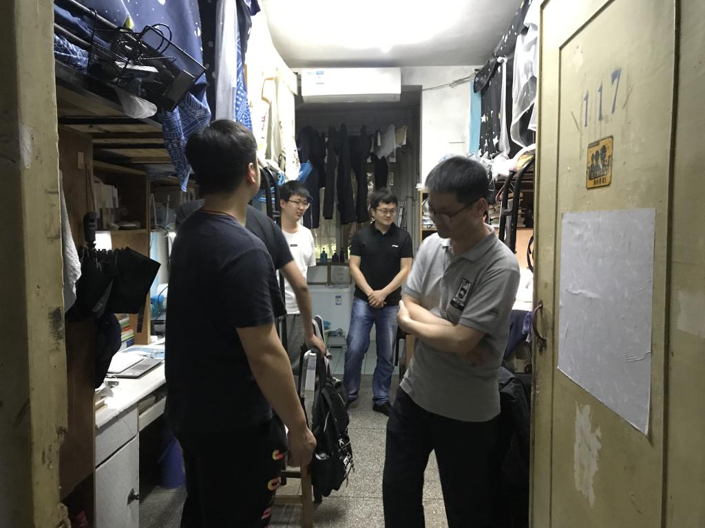 本网讯(通讯员 周磊)为进一步营造安全、文明的学生宿舍生活环境,5月12日晚,best365网页版登录党委副书记桂展鹏带领学工办辅导员、学生干部一行深入学生宿舍开展安全卫生检查工作。