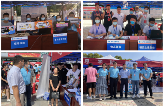 9月16日上午,电气信息学院院领导班子到迎新现场看望新生,与新同学亲切交谈。
