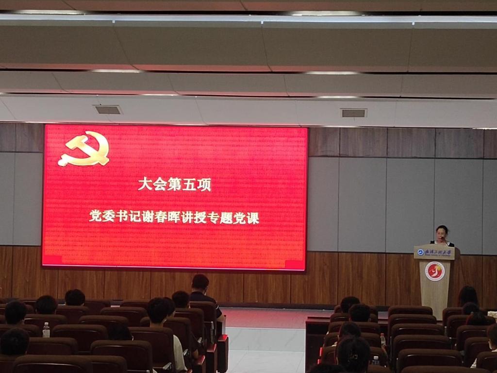 学院党委书记谢春晖为毕业生党员作了以“不忘初心,把青春播撒在民族复兴的征程上”专题党课。结合习近平总书记在庆祝中国共产主义青年团成立100周年大会上的讲话,谢春晖号召全体毕业生党员做理想远大、信念坚定的模范;做刻苦学习、锐意创新的模范;做敢于斗争、善于斗争的模范;做艰苦奋斗、无私奉献的模范;做崇德向善、严守纪律的模范。同时她勉励毕业生党员立大志,做红色精神的传承者,用习近平新时代中国特色社会主义思想武装头脑;成大才,做孜孜不倦的学习者,让勤奋学习成为青春远航的不竭动力;明大德,做道德风尚的引领者,主动践行社会主义核心价值观;担大任,做起而行之的奋斗者,让青春在为祖国、为民族、为人民、为人类的不懈奋斗中绽放绚丽之花。