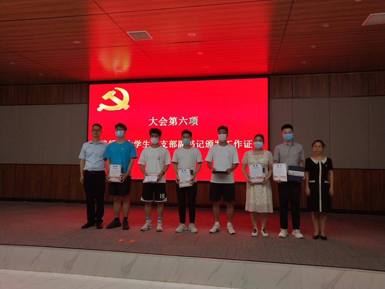 会上,学院领导为毕业生党员担任支部副书记的同学颁发了工作证书,为全体毕业生党员依次发放了党员纪念品。