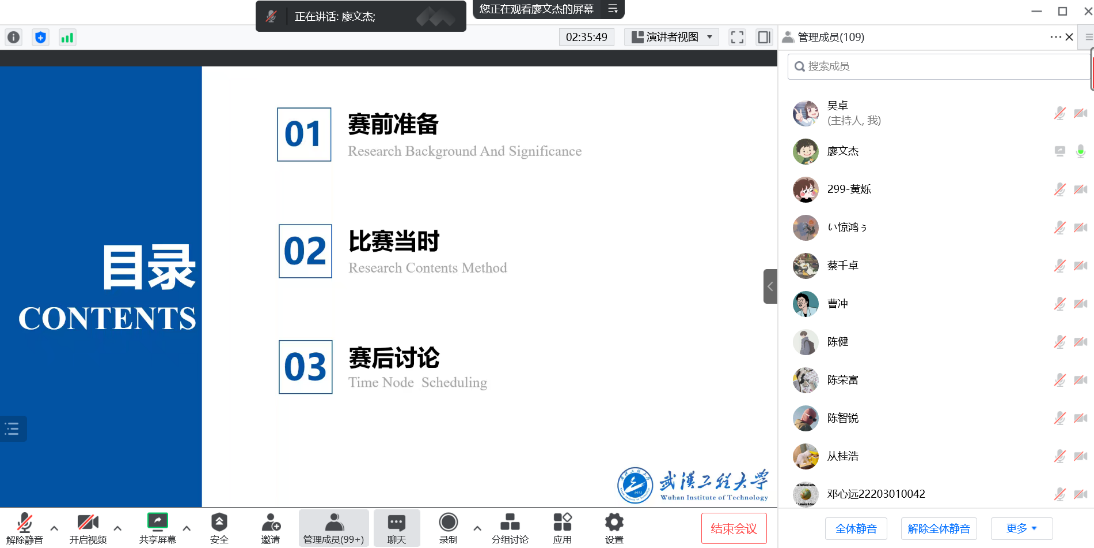 辅导员黄光亮老师对本次活动的意义进行了讲解号召全体学生树立正确的学术科研观念,在学术道路上见贤思齐、积极进取、争创一流,鼓励大家向优秀的学长学姐学习,并积极参加相关的学科竞赛。
