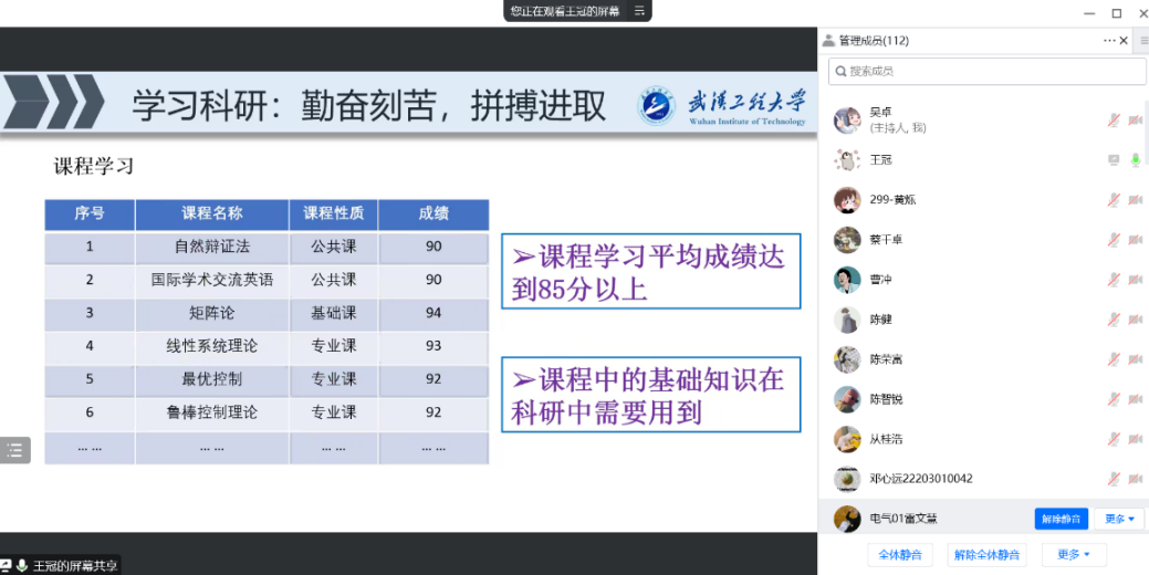 2020级国奖获得者王冠结合自己的科研经历从三个方面向大家提出了建议。在思想品德方面坚定信念、砥砺前行在学习科研方面勤奋刻苦,拼搏进取在生活实践方面挥洒汗水、全面发展。