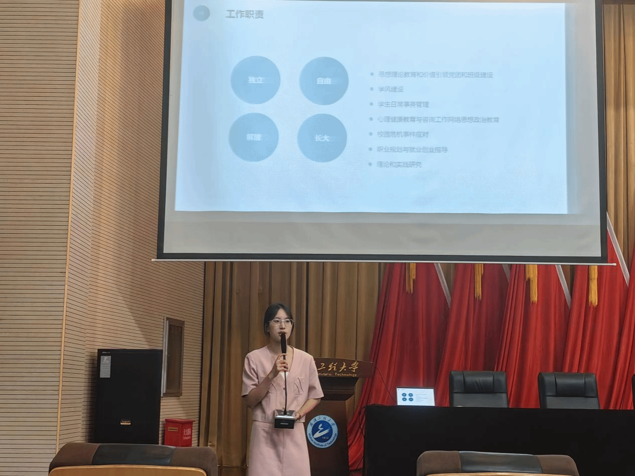 9月15日,best365网页版登录在四教多功能报告厅召开了2023级本科新生年级大会。辅导员邬桢洁分别从你我相知、入学须知、成长认知、安全必知几个板块向新生强调了大学生活的注意事项。