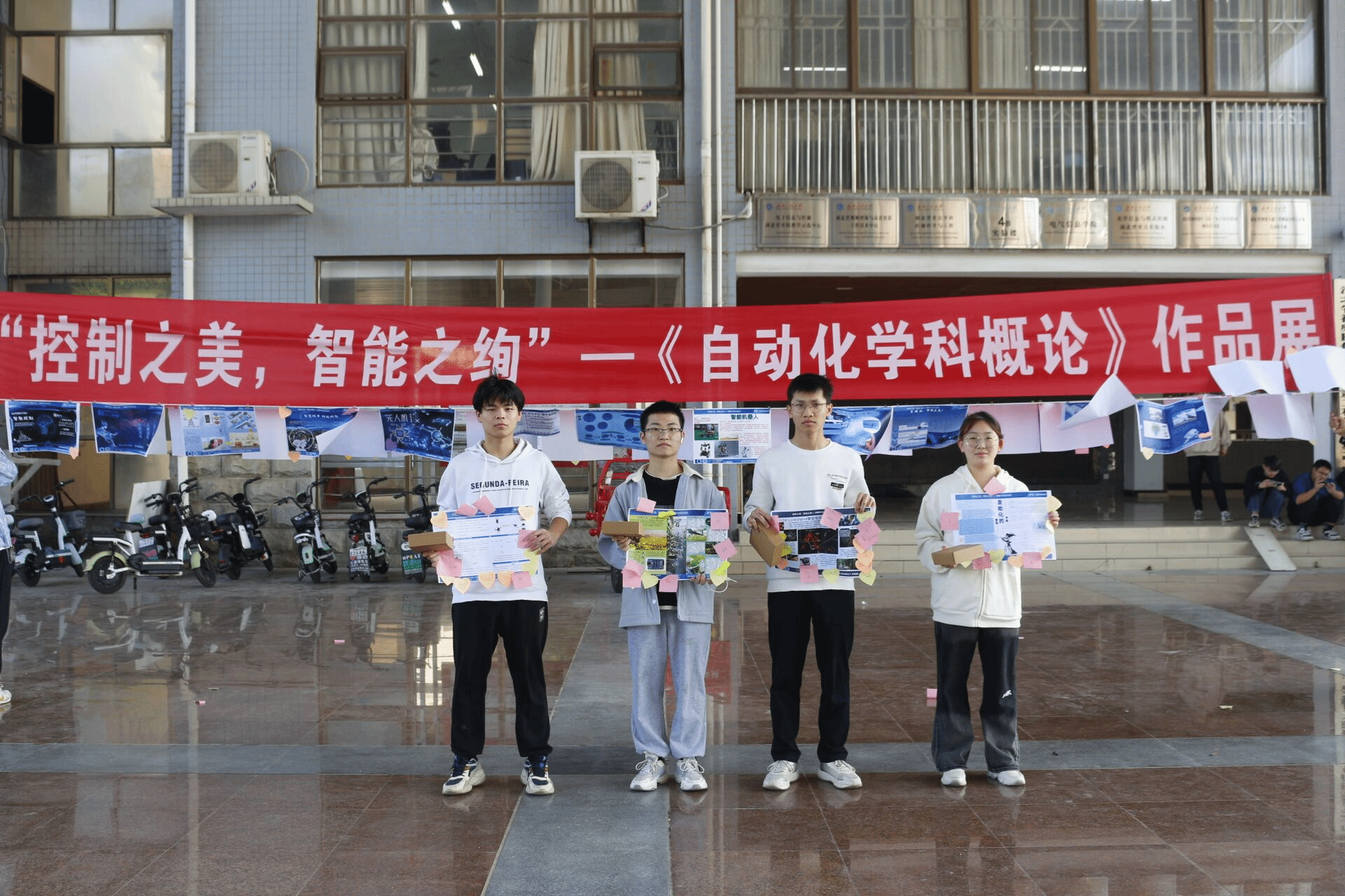 本网讯(通讯员 林梦颖 邹蝶 黄自鑫)《自动化学科概论》作为自动化类学科的基础与专业基础课程,面临着实践环节缺乏、理论与应用脱节等问题。为培养学生的实践能力、创新思维和跨学科合作意识,best365网页版登录2022级和2023级自动化专业全体学生于10月22日在知博广场开展以“控制之美,智能之绚”为主题的《自动化学科概论》海报作品展,在展示学生在自动化学科领域创意和才华的同时,将思政元素融入教学实践中,促进学生全面发展,进一步推进科技强国的建设。