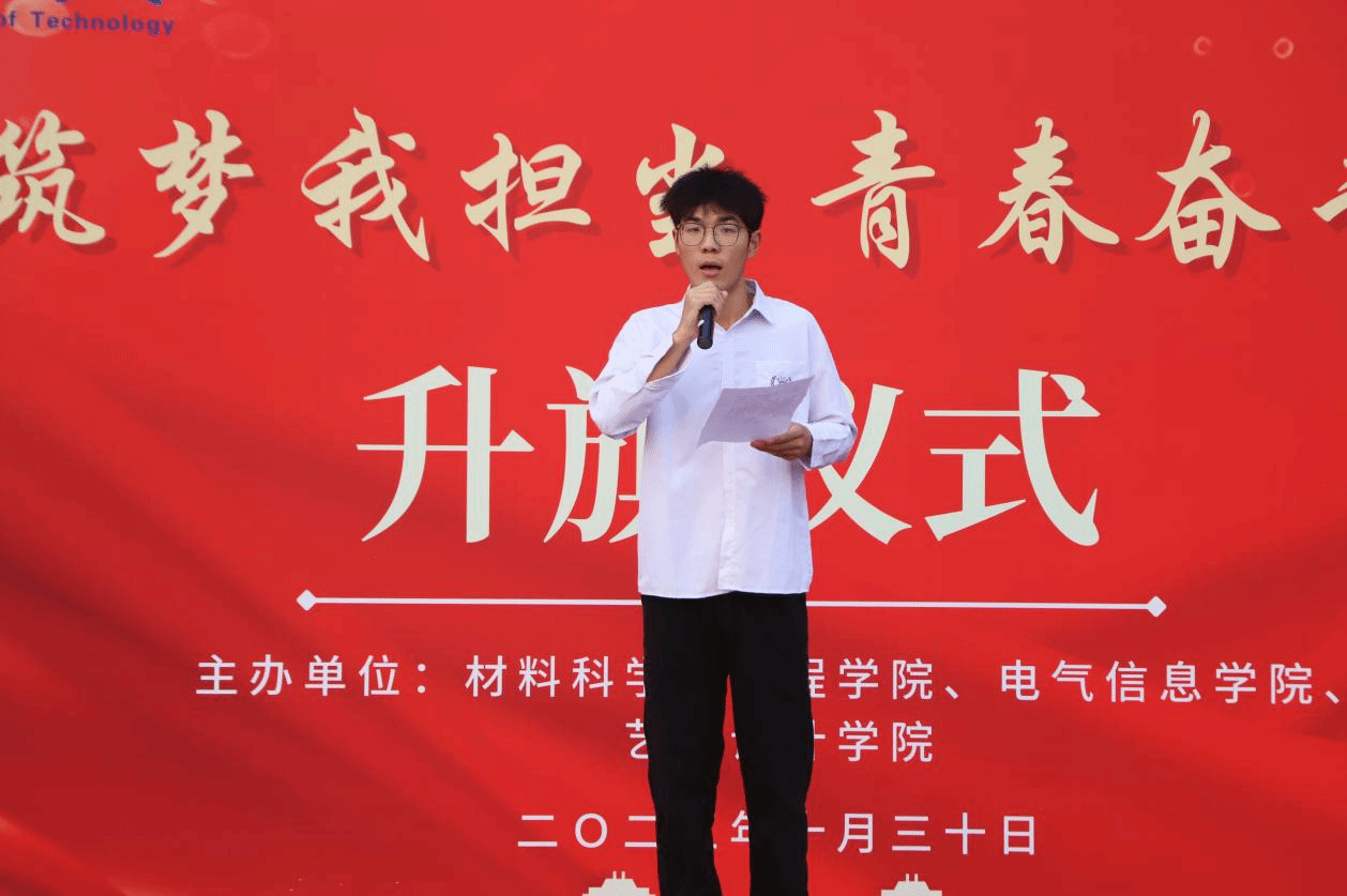 best365网页版登录2023级本科生卞宇翔代表全体新生在国旗下讲话他激动地说道:“相逢武工大许久,热心友爱的同学,耐心指导的学长学姐,认真负责的老师,让我虽然身处异乡,心里却始终暖流涌动。”同时他表示大家作为大一新生,应惜时,律己,扎根学校沃土,学习优秀榜样时刻准备着投身时代发展的大势,时刻向往着为国家富强、民族复兴散发出光和热,时刻提醒自己正值青春韶华,要抓住这美丽的年华来谱写无悔的诗篇,时代的责任赋予青年,时代的光荣属于青年