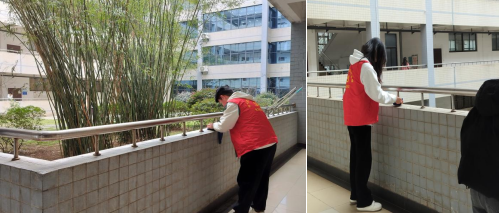 志愿者们根据各自的任务分工,有条不紊地展开清洁工作。活动中,学生们互相协助,分享着各自的清洁小窍门,不仅拉近了彼此之间的距离,也使他们深切感受到了团队协作的巨大力量。有的志愿者躬身劳作,专心致志地擦拭着栏杆;有的则细心地清除着砖块上的尘埃。每个人脸上都洋溢着积极参与、乐于奉献的光彩,展现了电气学子积极向上的态度。