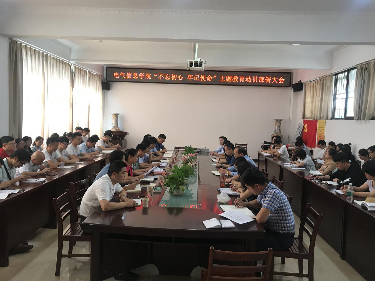 学院党委书记谢春晖作动员讲话并对开展好主题教育提出三点意见。一是切实把思想和行动统一到习近平总书记重要讲话精神上来,扎实开展主题教育,推动习近平新时代中国特色社会主义思想走深走心走实,推动全面从严治党向纵深发展,密切党和人民群众的血肉联系,奋力谱写学院高质量发展新篇章。二是准确把握主题教育的目标任务,不折不扣贯彻“守初心,担使命,找差距,抓落实”总要求,牢牢把握“理论学习有收获,思想政治受洗礼,干事创业敢担当,为民服务解难题,清正廉洁作表率”目标任务,扎实推进各项工作安排,抓好学习教育、深入调查研究、深刻检视问题、强化整改落实,运用学习调研成果,针对检视反思问题,联系整改落实情况,解决学院实际问题。三是加强对主题教育的组织领导,强化学院党委主体责任,落实学院党委书记、党支部书记第一责任人责任;注重宣传引导,为主题教育营造良好氛围;坚持务实作风,注重实际情况,统筹安排、有序推进;抓好统筹兼顾,坚持围绕中心、服务大局,既要认真落实中央统一部署,把“规定动作”做到位,又要结合学院教育工作实际,使“自选动作”有特色。