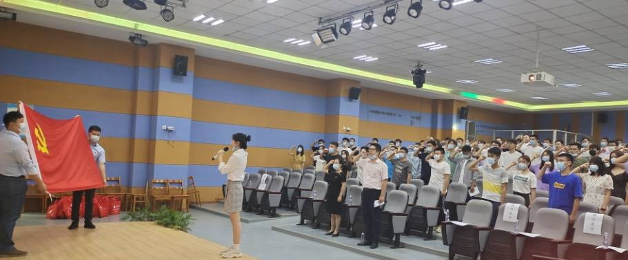会议在庄严激昂的《国际歌》中拉开序幕,毕业生党员代表、学校样板支部电气工程及其自动化学生党支部副书记何晶晶带领全体党员同志重温入党誓词,重拾初心使命。