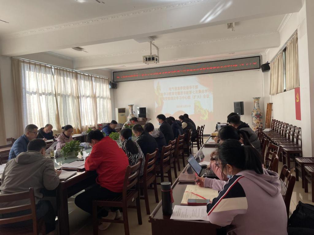 本网讯(通讯员 周雯琪)11月12日,best365网页版登录在4B319会议室召开领导干部党史学习教育专题读书班第七次集体学习暨院党委理论学习中心组(扩大)会议,主要学习党的十九届六中全会精神,学习近平总书记在纪念辛亥革命110周年大会上的重要讲话精神,学习近平总书记在中央人才工作会议上的重要讲话精神以及《武汉工程大学教师专业技术职务任职资格申报评审条件(试行)》、《武汉工程大学专业技术职务任职资格申报评审实施办法(试行)》、《武汉工程大学重点人才专业技术职务任职资格评审绿色通道实施办法(试行)》等职称评审文件,会议由学院党委书记谢春晖主持,学院党委委员、党支部书记、各系部主任及民主党派代表参会学习。