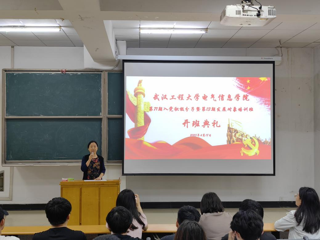 学院党委书记谢春晖对第71期入党积极分子暨第13期发展对象培训班顺利开班表示热烈祝贺,并对全体学员提出了四点希望:一是要提高政治站位,学深悟透习近平新时代中国特色社会主义思想和党的二十大报告精神;二是要提高认识,明确培训意义,踔厉奋发守初心;三是要端正学习态度,提高学习成效,做到知行合一;四要坚定理想信念,强化党性修养,争取早日加入党组织。她要求全体学员将学习贯彻习近平新时代中国特色社会主义思想主题教育与党校学习结合起来,积极参与志愿服务、实践活动,希望同学们珍惜党校培训学习机会,将它作为人生新的起点,不断充实自己、提高自己、完善自己,把学习成果转化为积极向党组织靠拢的自觉行动,争取早日在思想上、组织上加入到党的行列中来。