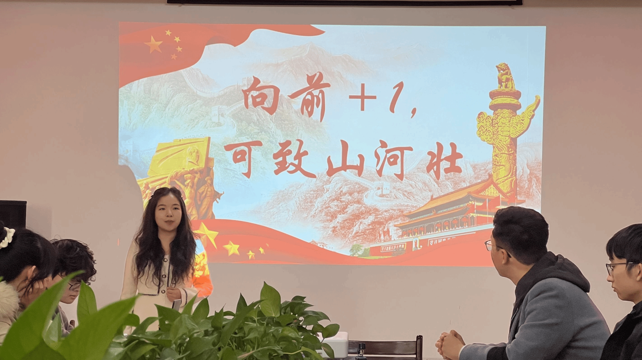 2023年度“百生讲坛”省级“银牌主讲人”、支部入党积极分子汪巧玲以《向前+1,可致山河壮》为主题,着眼脱贫攻坚战的历史性成就,展望乡村振兴,讲好身边的榜样故事,号召支部全体同志投身民族复兴的宏伟征程。