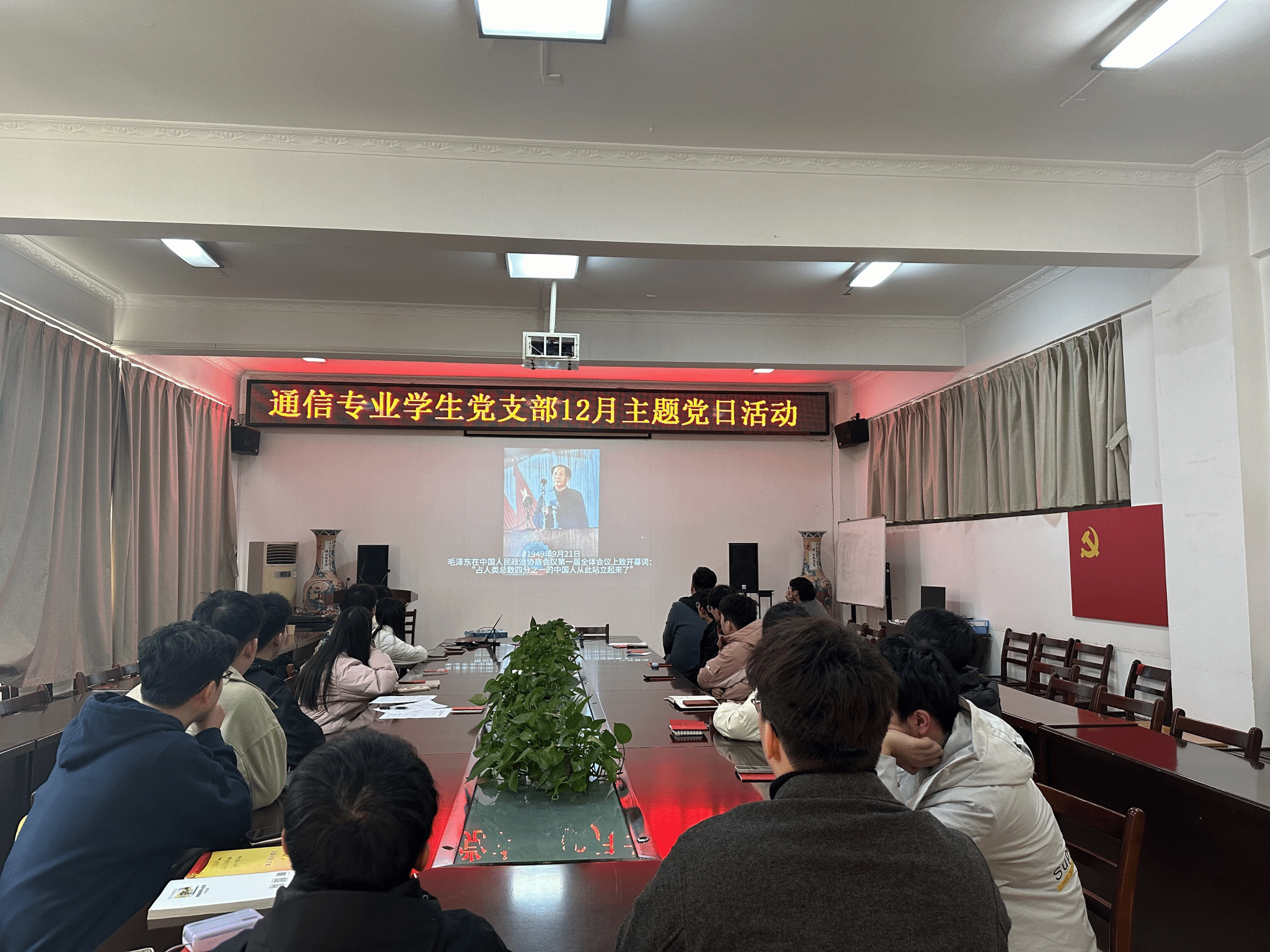 通信专业学生党支部紧跟时事学,为纪念毛泽东同志诞辰130周年,全体党员集中观看了《回顾毛泽东一生中的难忘瞬间》专题视频,组织学习了习近平总书记在纪念毛泽东同志诞辰130周年座谈会上的重要讲话。