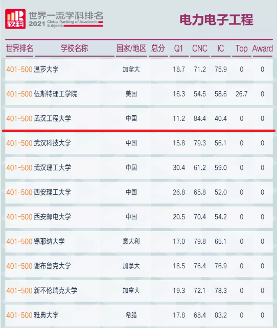 本网讯(通讯员 李自成)5月26日,高等教育评价专业机构软科正式发布2021“软科世界一流学科排名”,武汉工程大学电力电子工程首次进入世界一流学科排名,位居第401-500位。