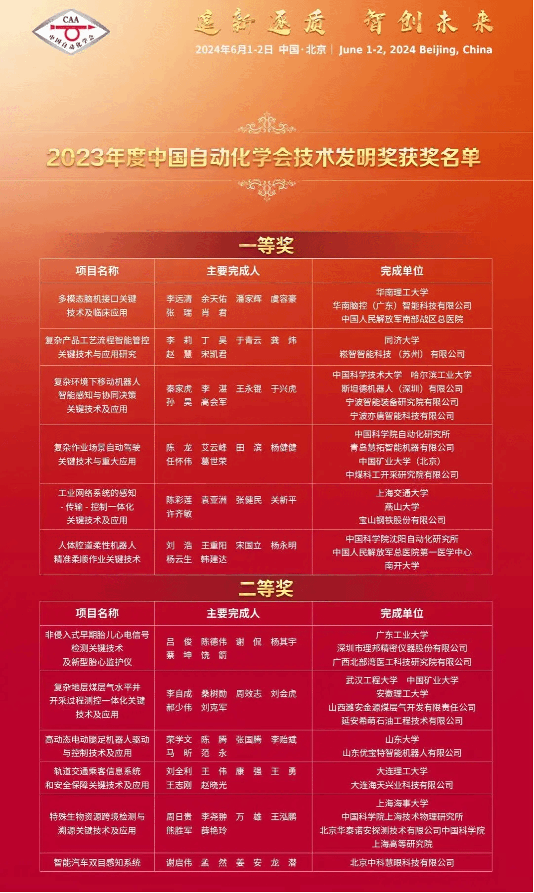 据悉,中国自动化学会是我国最早成立的国家一级学术群众团体之一,是在我国自动化事业的老前辈钱学森、沈尚贤、钟士模、陆元九、郎世俊等同志的倡议推动下成立的。1961年11月27日,中国自动化学会第一次全国代表大会在天津召开,钱学森被推选为中国自动化学会第一届理事会理事长。中国自动化学会技术发明奖旨在表彰在我国自动化领域运用智能、控制等科学技术知识做出产品、工艺、材料及其系统等重大技术发明的科技工作者。
