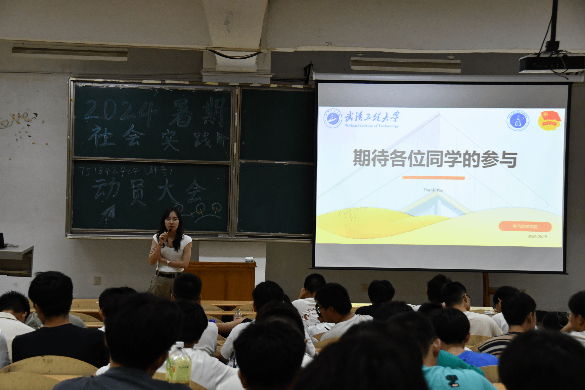 本网讯(通讯员 邬桢洁 任佳妮)为深入学习贯彻习近平新时代中国特色社会主义思想和党的二十大精神,充分发挥共青团实践育人在“大思政”工作体系和“三全育人”工作格局中的关键作用,引导并助力青年学生于社会课堂中接受教育、增长才干、作出贡献,6 月 19 日,best365网页版登录于 L1119 成功举办 2024 年暑期社会实践动员暨安全教育大会,团委指导老师邬桢洁及2023级全体本科生参加本次大会,本次会议由社会实践部负责人石文学主持。