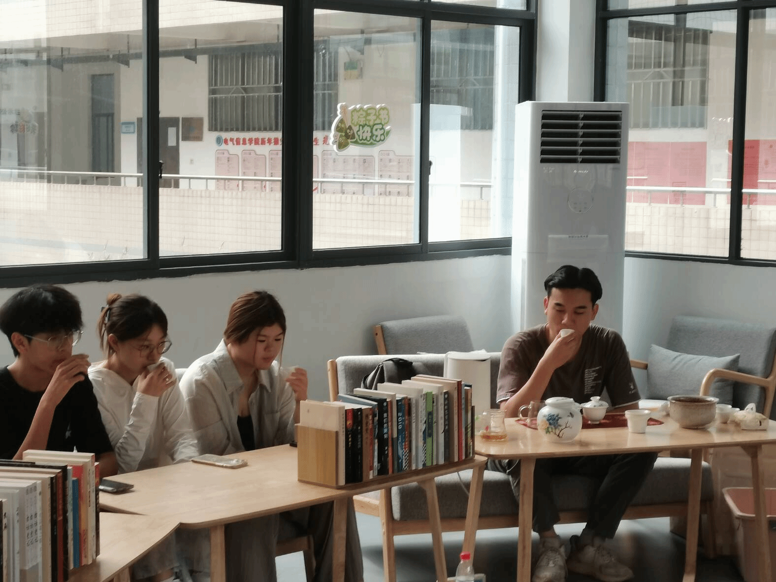 接着,茶艺师现场为大家展示了泡茶的技巧和步骤。从选茶、泡茶、倒茶到品茶,每一个细节都体现了茶艺的精湛与优雅。品茶环节开始后,师生们围坐在一起,细细品味着茶香,依次分享着自己对“茶”的了解,以及对于自我关照这一话题的想法和感悟,即使同学们来自不同的家乡,但是都缘于对茶的兴趣,畅所欲言,分享个人见闻。张老师一一解答大家对于茶的一些好奇,并给予大家品茶种类的建议,大家纷纷表示,品茶让他们感受到了前所未有的放松与愉悦。在茶香中,他们仿佛找到了一个可以倾诉心声、分享喜悦的港湾。