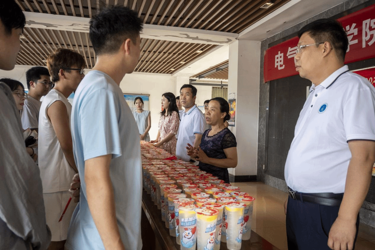 今年暑假,学院为留校学生准备了400杯柠檬水,给同学们送去了炎炎夏日的清凉及关怀。7月10日下午,学院党委书记谢春晖、副院长李自成、副院长田斌以及辅导员老师们为留校学生送上了凉爽的柠檬水和暖心的慰问。党委书记谢春晖叮嘱留校学生:第一要注意劳逸结合、科学备考,提醒考研学生要注意作息安排,注意防暑降温;第二要注意安全,遵守学校规章制度,服从学校统一安排和管理;第三要定期与家长联系,外出时结伴而行,尤其深夜避免单独出行。同学们对院领导以及老师给予的关心表示感谢,并表示会积极配合学校工作,遵守学校的要求。