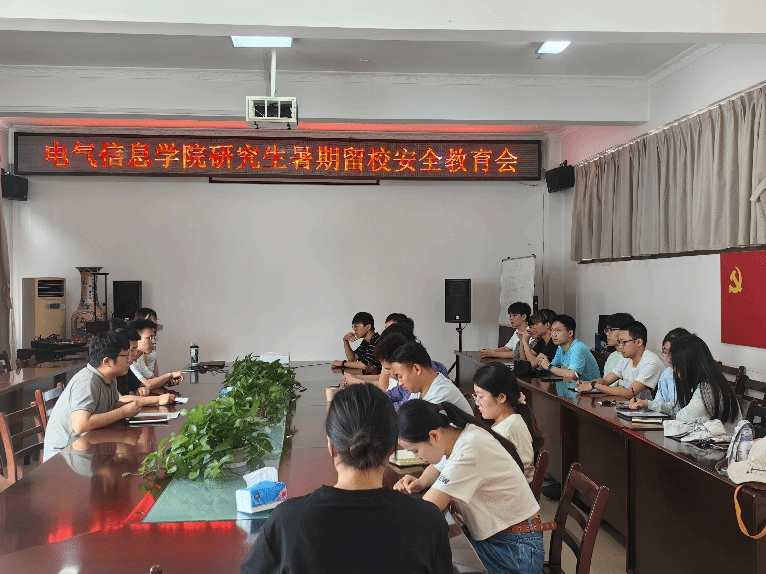 会上,黄光亮宣读了《武汉工程大学2024年暑期学生工作方案》、《高等学校暑期安全温馨提示》等文件内容,并提醒留校研究生谨记以下四点事项:一要注意人身安全防范。不到无安全设施的水域游泳。自觉遵守校内外交通法规。二要增强网络安全意识。警惕各类电信网络诈骗。理性浏览网络信息,不造谣不信谣不传谣。三要履行离校请假手续。暑期中途离校或返校,务必告知辅导员及导师。四要遵守宿舍管理规定。外出锁好宿舍门窗,随身携带贵重物品。不在宿舍使用大功率电气,不在宿舍乱拉乱接电线,严防火灾事故。