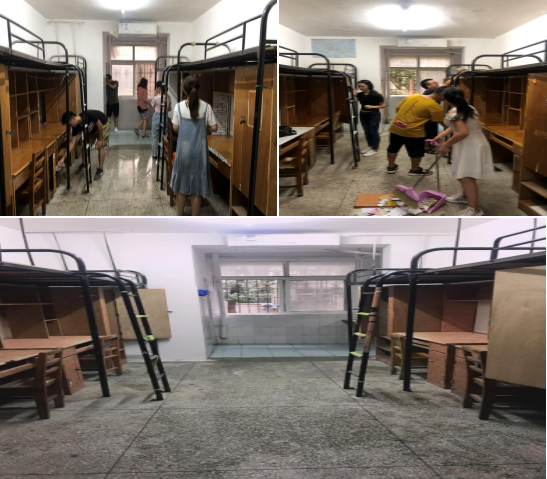 虽夏日炎炎,却挡不住“小红帽”们为新生服务的热情,他们认真细致的排查宿舍问题并做好登记,不辞辛劳地拖地、擦桌子,汗水浸湿了衣衫,双手沾满了灰尘,经过两个多小时的清扫, 90余间新生宿舍变得干净、整洁,焕然一新。