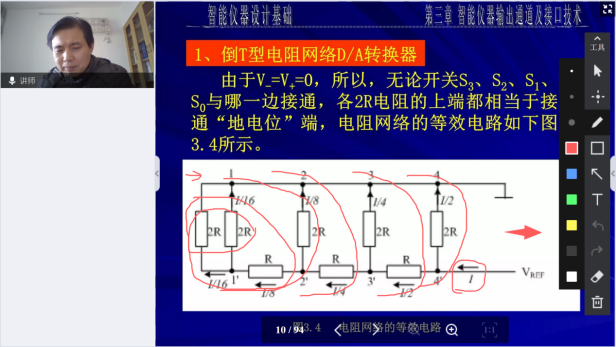 | (图为详细讲解数字量转变为模拟量的电路实现原理和过程的讲课片段) |
