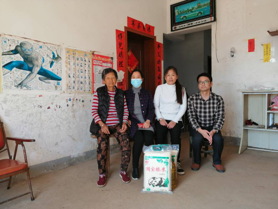走访时,谢春晖、桂展鹏向帮扶家庭赠送了大米、食用油等生活用品。
