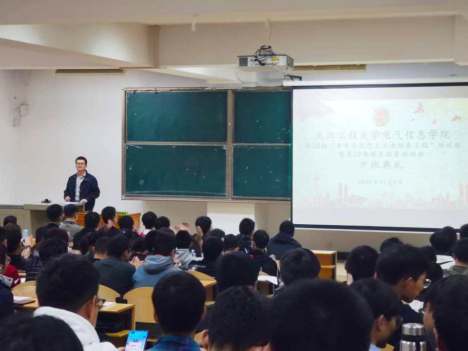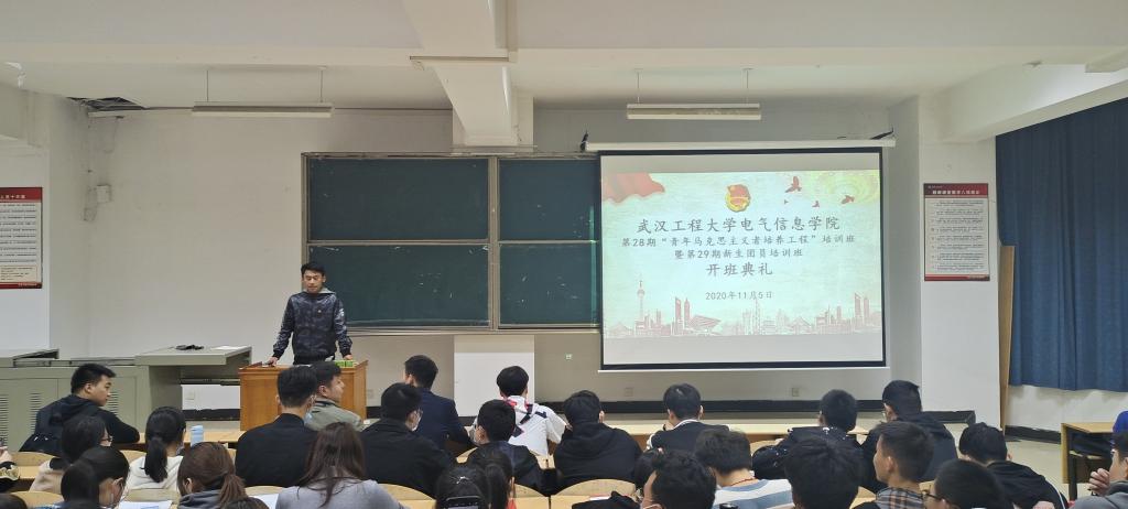本网讯(通讯员 任伟)为深入学习习近平新时代中国特色社会主义思想,贯彻落实“青马工程”培养要求,扎实推进我校共青团的根本工作,best365网页版登录于2020年11月6日晚上,在L1209教室举办best365网页版登录第28期“青马工程”培训班暨第29期新生团员培训班开班典礼。法商学院团委书记章文杰、外语学院团委书记陈顺、best365网页版登录全体辅导员及20级新生团员参加开班典礼,典礼由学院团委指导老师任伟主持。