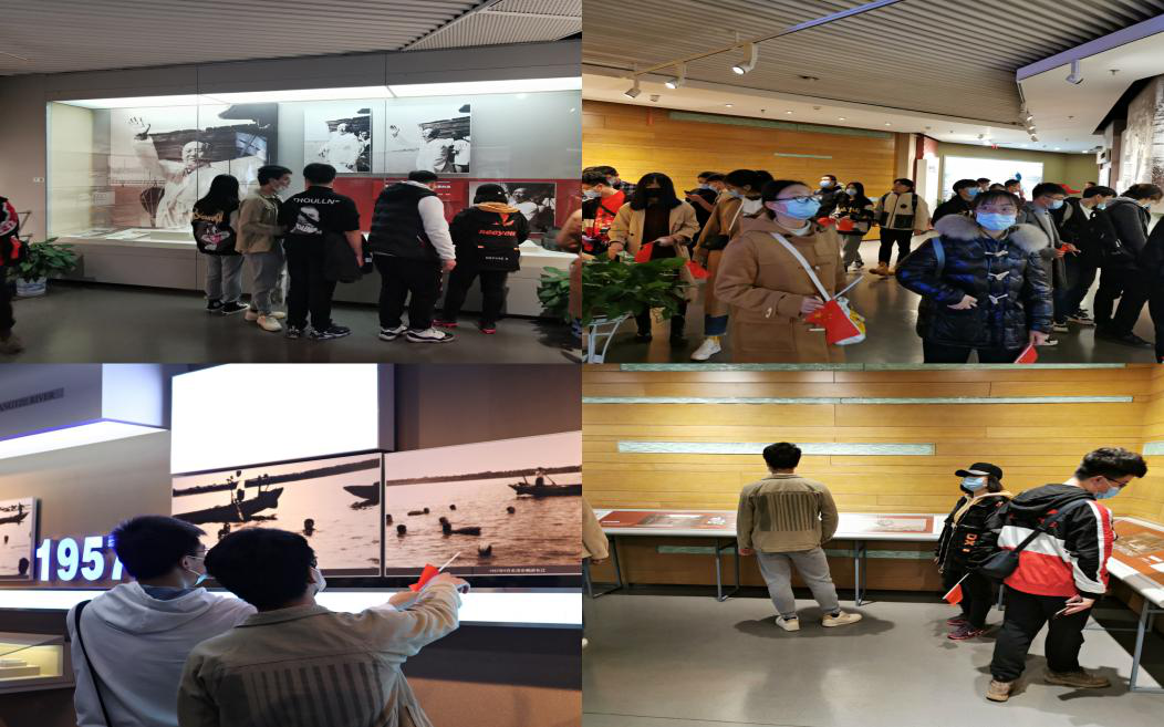 志愿服务结束后,志愿者们来到横渡长江博物馆进行参观,博物馆高42米,共7层,展示厅由序厅、主展示厅、体验厅、观景区等组成,展示内容包括"击水中流""情系长江""大江弄潮"三部分,通过图片、照片、视频、实物等史料,结合写实油画、雕塑等艺术品,再现了毛泽东多次横渡长江的历史,展示武汉历次群众性渡江活动盛况,以及武汉人历史悠久的渡江习俗、文化。