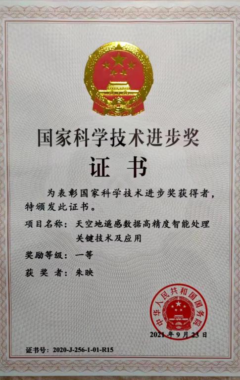 我校航天图像处理先进技术科研创新团队朱映老师作为主要参与人完成的研究成果“天空地遥感数据高精度智能处理关键技术及应用”获国家科学技术进步奖一等奖。该项目由武汉大学李德仁院士、王密教授团队牵头完成,围绕我国高分遥感系统“好用”和“用好”的目标,首创卫星遥感全球无地面控制高精度处理和数据挖掘的理论与方法体系,打破空地遥感高精度定位定姿核心装备和遥感信息实时智能服务系统核心技术封锁,实现高精度天空地遥感系统核心装备和技术自主可控,为国产卫星遥感影像自给率从15%提高到85%以上做出重要贡献,首次实现境外1:5万无地面控制点测图,推动了我国卫星遥感测图从有控制到无控制的行业智能化变革。