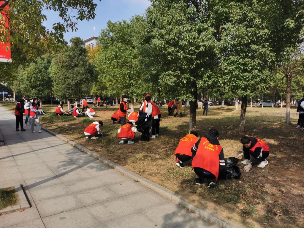 活动现场师生们热情高涨、摩拳擦掌、跃跃欲试。在学院党委副书记李国保的示范带领下,经过简单的分工协调,老师同学们手持扫把、簸箕等打扫工具争先恐后的扫落叶、清垃圾,默契配合,干劲十足。经过一个多小时的打扫,劳动实践区呈现出崭新的面貌。
